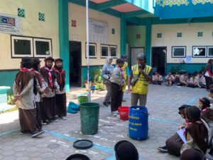 Siswa-siswi dijelaskan tentang jenis-jenis sampah dan bagaimana cara memilah sampah yang baik, kemudian diajari untuk membuat pupuk kompos dengan alat dari DLH Magetan yaitu tabung komposer.